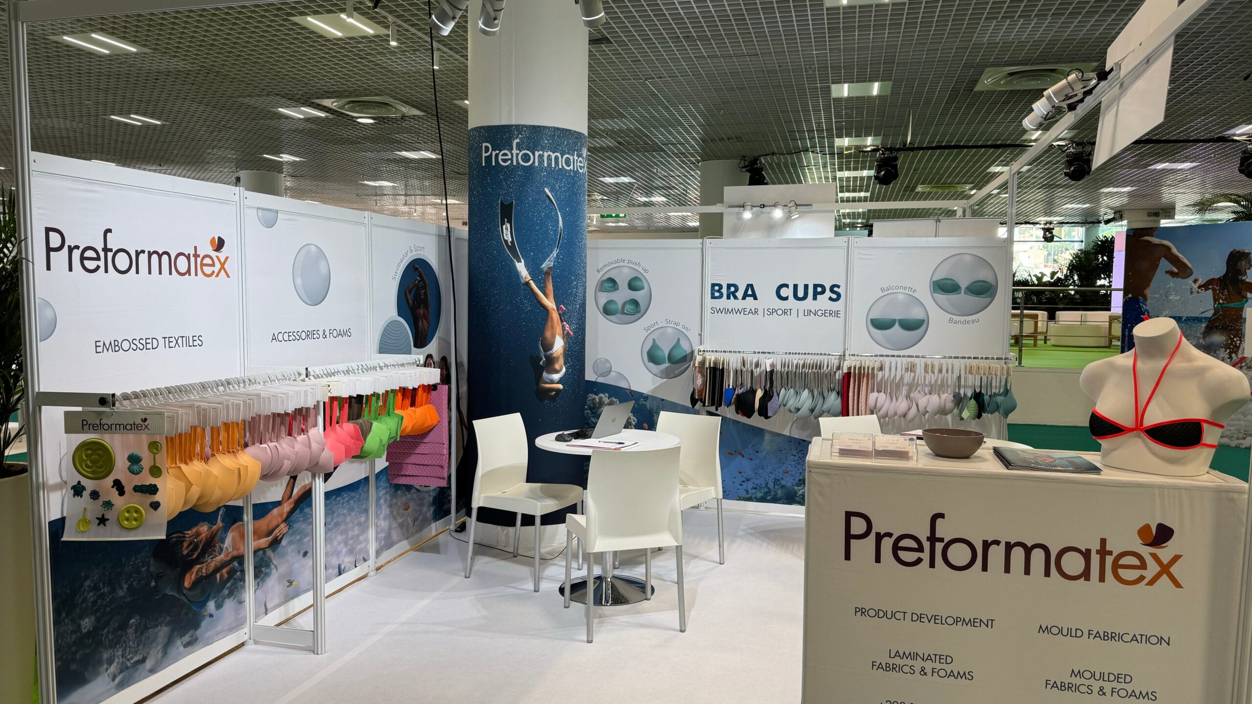 Mare di Moda 2024 in Cannes was a great experience for Preformatex. A a second-time exhibitors, we had the opportunity to showcase our innovative foam bra cups for swimwear, bikinis, and lingerie to an international audience. Our stand, designed with an underwater theme, attracted many visitors and industry professionals interested in our unique moulded designs.