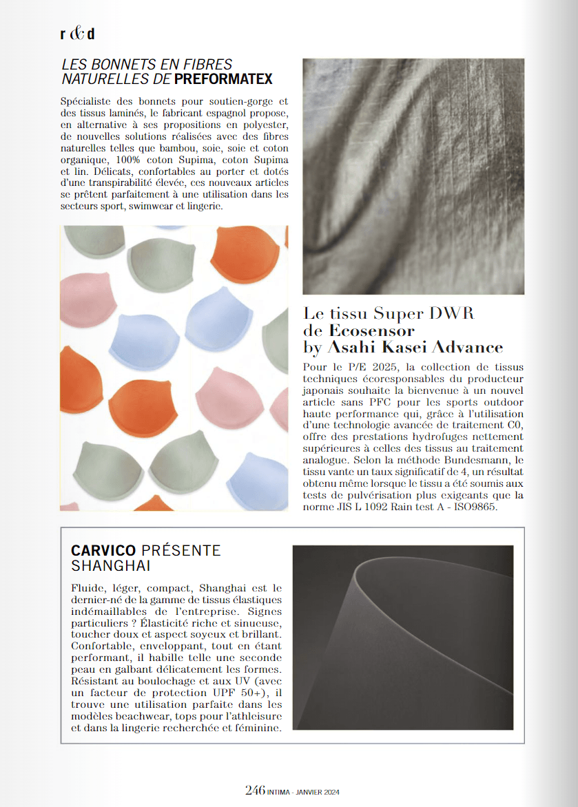 “Their range includes cups for corsetry, swimwear and sportswear in a wide range of qualities…” “They have presented us with their most innovative models. These include three cups with sinuous designs that fit the most striking necklines.”